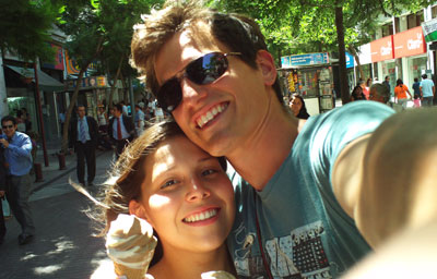 While we were there, we enjoyed the company of a fella named Wes who hailed from North Carolina. He bought us a round of mojitos that Maile made with serious deviousness (4-5oz of rum...). I ordered a seafood risotto which made me break out in a rash over my entire head and shoulders (something that doesn't even phase me at this point). And before we left, we told Maile and Victor, who together were the bar owners, that our plan was to acquire 24 bottles of wine for the cruise. Now, you may have had the leasure of enjoying some Chilean wine at one point or another, but let me tell you, the wine in Chile is great.. and cheap! They pointed us to "La Vino Teca," which is a specialty wine store in Santiago sparing no expense at acquiring the very best the country has to offer. Unfotunately their prices were a bit over our budget, but we managed to pull thirteen choice bottled from their stock. The other eleven we bought for $1.50 each at the supermarket. But that was the next day, after a serious hangover breakfast. We strolled the streets with Wes and had deep conversations about the military occupancy of Iraq and Afganistan.. he was a ground troop. But there was no way after those last mojitos that we were staying out too much later. The waitress at Elfo's, whom Wes had a pounding heart for, told me to put Lacy to bed immediately when we returned after her shift to pick her up. It was the best idea for the both of us.