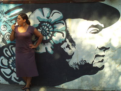 And I believe that this was the night that we decided to go out and drink some money away. After hitting up our favorite Bella Vista cage bar for anothe couple pitchers of Escudo and a few Pall Malls, we decided to get back closer to home. Fortuately, Providencia is a great place to do this, although the other clear option would to have stayed in Bella Vista. After scoping a few blocks of the local gastronomy, we landed on Amelia Sushi, where we ordered some of the best sushi we'd ever had. It was a roll, coated with a type of tempura, and flash fried so that the outside was nice and crispy. Gordon Ramsey would have been proud. We stayed there enjoying the warm evening and cool beer, watching the people come and go. Then we went next door to Elfo's bar to have a pisco sour. Now, mind you at this point we still hadn't been able to make up our mind on whether the Peruvian or Chilean pisco sour was better. Fortunately, our bartender Maile had it all covered. Upon ordering a pisco sour, she asked us, "Peruvian or Chilean?" Seizing the opportunity, we asked for both and a description of each. Apparently, it comes down to the type of limes each country puts out, and Peruvian or Chilean pisco. Peruvian limes are smaller, greener, and a bit sweeter than their Chilean counterpart. Also, Peruvian pisco has a much more potent flavor than the Chilean. Both made with sugar, but without as much egg. The foam you see on top of Peruvian-style pisco sours is a foam of egg white. Makes it hard to drink a few... All in all, the Peruvian pisco sour had a harder kicking flavor, the Chilean was much smoother altogether. And guess what? I liked the Peruvian style better, and Lacy liked the Chilean better. Oh well...