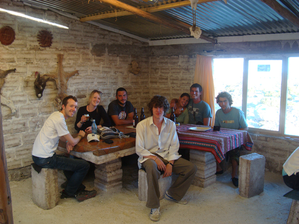 Now, he really hadn't done anything dangerous aside from making me want to stab him with my toothpick, but you can't keep your attention off of a freak in front of you who thinks he's riding with a busload of pals. It's remarkable how deep in his world he was. The couple sitting behind us came up front for a moment and after loaning him a key to rip open another of his bottles, they were scared off. He was too intense. Fucking guy kept mumbling some awful tune and rolling his eyes back in his head. You don't want to stare, for sake of awakening some temper, but you can't get this Bolivian coke-headed asshole out of your periphery. You have no idea if this guy's gonna creep up during the night with one of his trillion brilliant ideas.