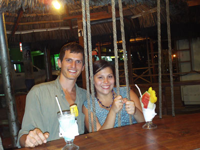 Although the nightlife of Atacames is what makes the pueblo most famous, we stayed most nights in our apartment at Marbella drinking the local and amazingly inexpensive Pilsener. Each liter cost us a mere $1... I don't know an option otherwise. In total, we drank over thirty of these in a week's time, which is shown in this episode as well. You will find a special section at the end of this post about the drinking game we devised to keep ourselves entertained. The reason we stayed off the avenue at night was due to an increase of violent crime, especially against gringos (eg. white folk). We stayed well out of trouble despite an encounter with - what would seem like - one of Atacames' most dangerous people... We made a habit of eating our bbq conch and camarones a la plancha at a Colombian restaurant at the end of our block. One night, a younger guy doubled back and sat behind me striking up conversation in which I mentioned our place of residence. Our waitress, whom we had become familiar with, came quickly with a look of grave danger in her eyes. I noticed this as clear as this guy's attraction to my pocket That night, we became increasingly afraid (as we had no idea how scared we should be) when we heard specific taps on our bedroom window, accompanied by two gun shots very close by. After flipping out the lights, we decided to move to the other bedroom on the inside walls of the hotel, barring the door with the other single bed. Our night of near-death turned out just fine. Bars on the windows and a guard at the front gate kept us from any harm... Silly, we thought afterward.